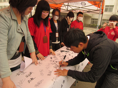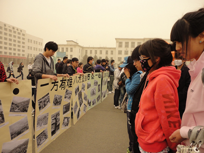 12日下午,同学们脸色凝重,排长队进行有序进行捐款捐物活动。活动展示的一张张震区照片,令在场同学触目惊心,心情沉重!同学们纷纷在活动台前的签名簿上签字,表达对逝者的哀思,更传达对灾区重建工作的支持。活动最终募捐资金5440.7元,物品200余件,通过相关机构支援灾区重建工作。