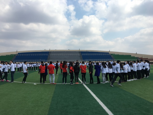 继会计系学生干部团体训练活动之后,心理与健康教育教研室教师于4月27日在新体育场为系里学生干部举行了第二次大型团体心理训练。参加本次团训的是投保系50余名学生干部,目标是“促进沟通合作,提高凝聚力”。团训由王岩松老师指导,张慧敏、刘雅文、鲍杰、于锐等四位心理老师辅助进行。