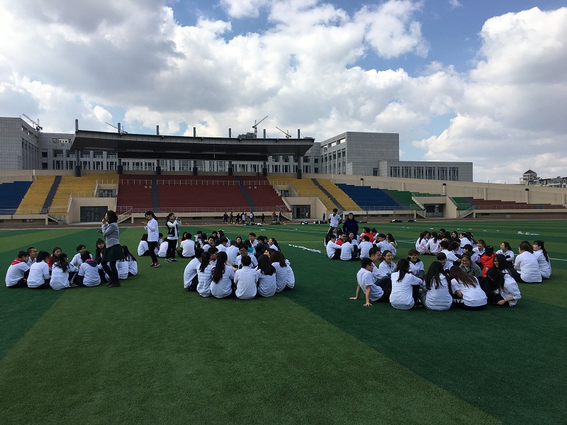 首先老师请大家手拉手围成一个大圆圈,通过报数将全体成员分成十个小组。小组建立之后通过进行“虎克船长”的热身游戏,使组内成员彼此增进了熟悉感。