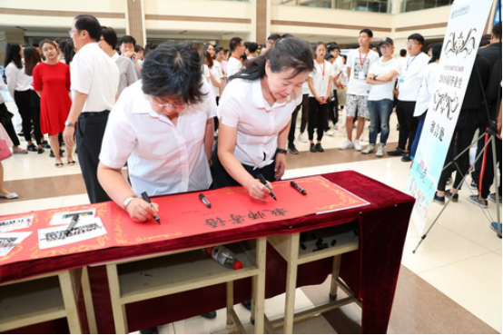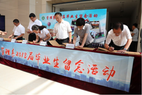 典礼前学院领导为毕业写下祝福寄语并与毕业生合影留念