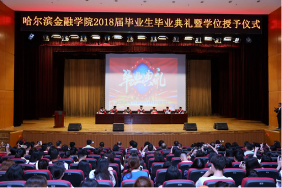 6月22日上午9点半,哈尔滨金融学院2018届毕业典礼暨学位授予仪式在金苑会堂隆重举行。学院领导;各单位、各部门负责人;全体学生工作者、毕业班班主任、部分任课教师;2018届毕业生代表、在校学生代表和毕业生家长代表参加了典礼。党委副书记、院长于沐琳深情寄语毕业生。毕业典礼由党委委员、副院长徐春香主持。